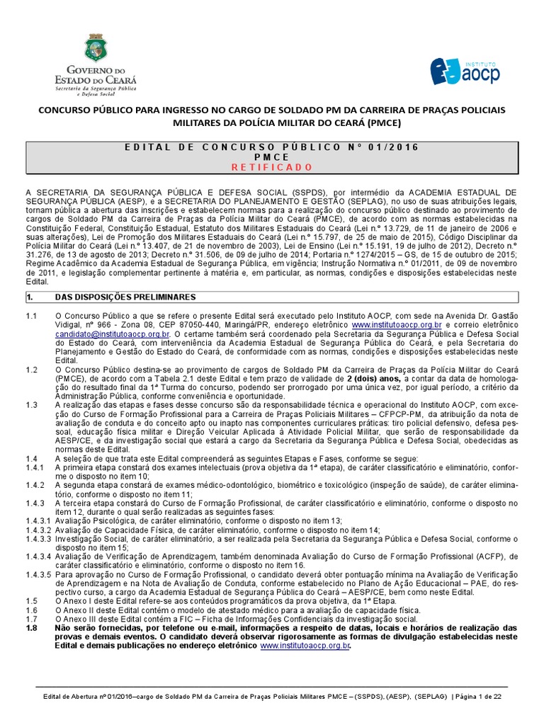 Edital Pm Ce 2016 Conteúdo / Concurso PM CE: com edital próximo, veja atribuições dos ... - Jul 27, 2021 · de acordo com o edital pm pi, o subsídio inicial ofertado para o cargo de soldado é de r$ 3.470,66.